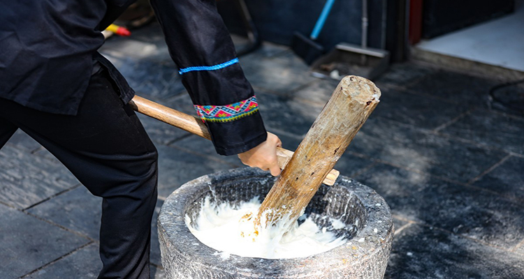 打糍粑:農家過年時,會用糯米蒸熟后捶打成糍粑,象征團圓美滿,常蘸糖或包餡食用。